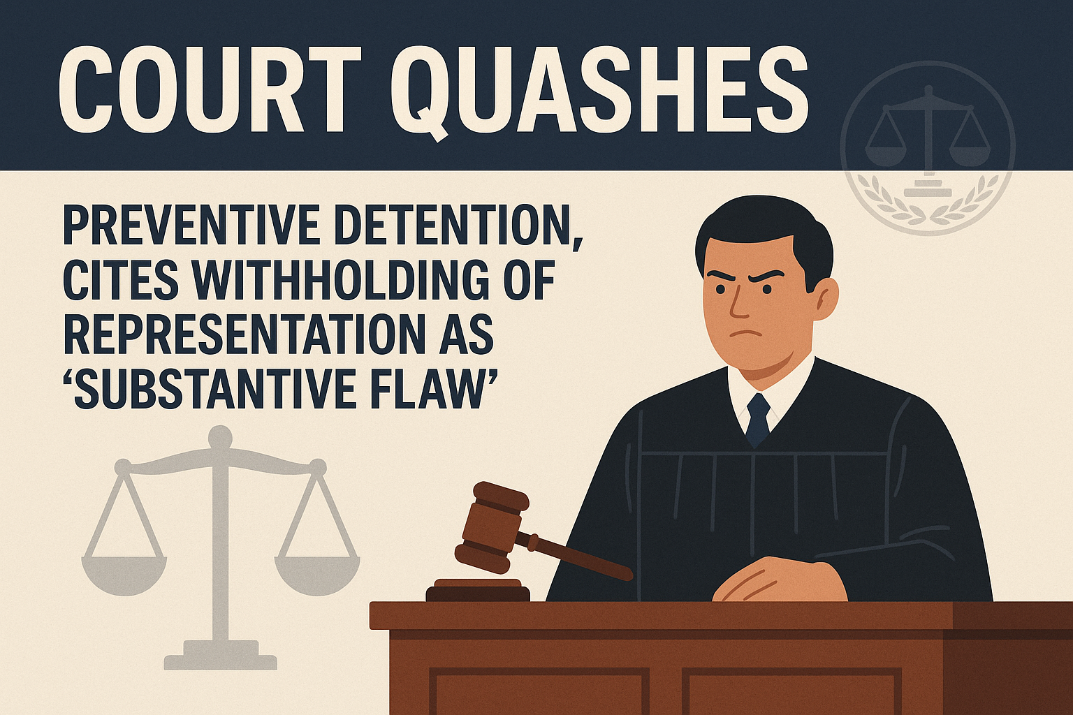 Srinagar, May 22, 2025 — In a significant ruling, the High Court of Jammu & Kashmir and Ladakh quashed the preventive detention of Mohammad Yaqoob Bhat under the J&K Public Safety Act, 1978, citing serious procedural lapses and violations of constitutional safeguards.